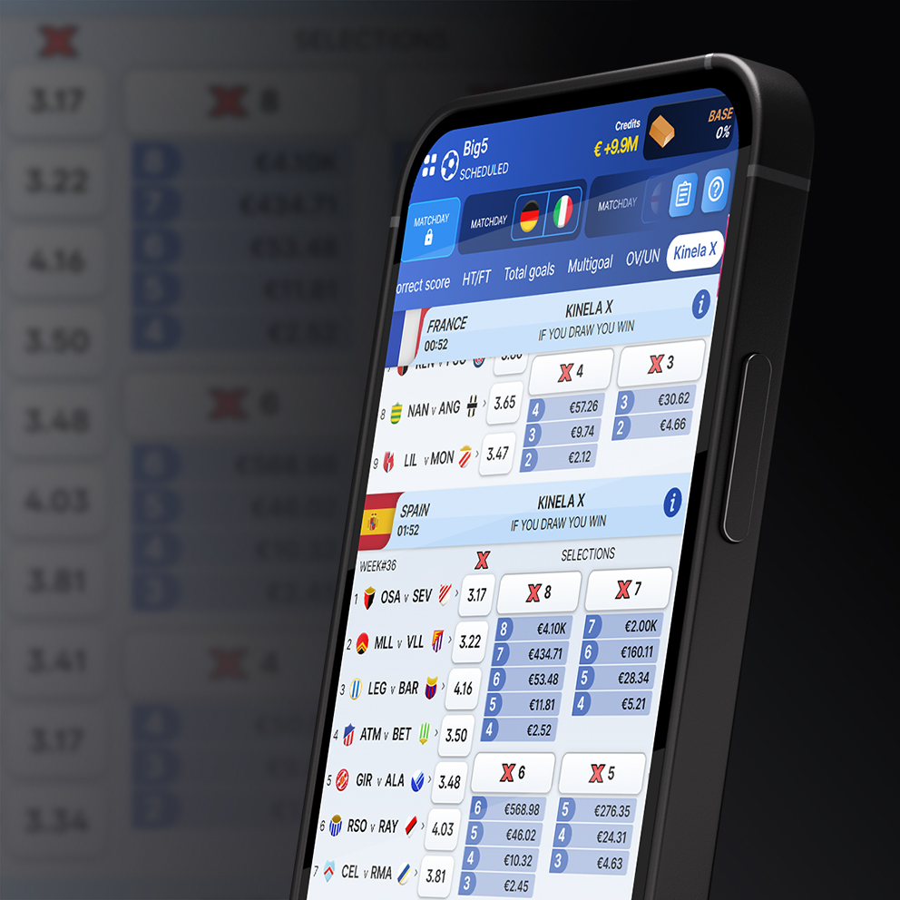 Ya disponible para las ligas en Big5, Kinela X transforma el clásico mercado de empate en algo mucho más interesante. Ahora, los jugadores pueden apostar de 3 a 8 empates en un solo boleto. ¿Los partidos? Todos seleccionados de las cinco ligas definidas por cada operador. (Una de las ventajas más distintivas de Big5. Descubre más aquí).